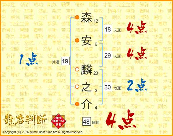 森安麟之介さんの総運は48画の4点!