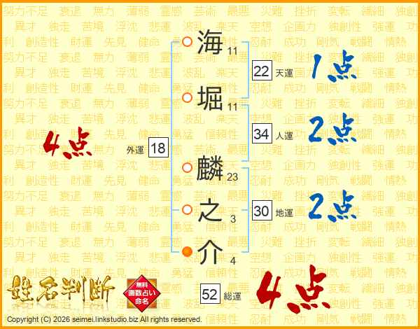 海堀麟之介さんの総運は52画の4点!