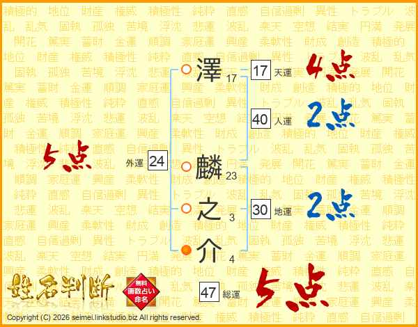 澤麟之介さんの総運は47画の5点!
