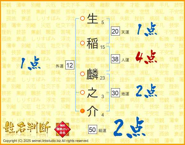 生(5画)稲(15画) 麟(23画)之(3画)介(4画)