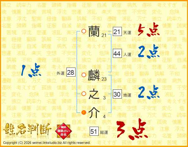 蘭麟之介さんの総運は51画の3点!