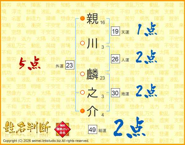 親(16画)川(3画) 麟(23画)之(3画)介(4画)