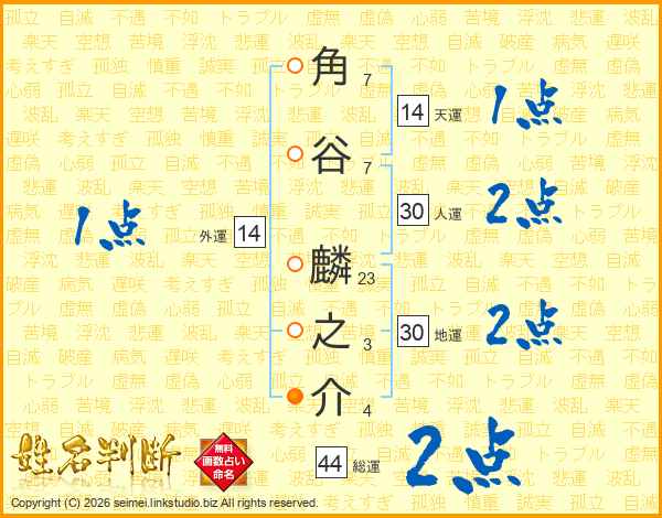 角谷麟之介さんの総運は44画の2点!