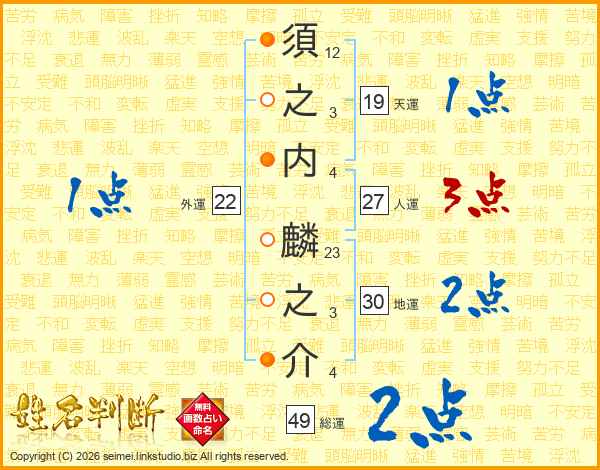 須(12画)之(3画)内(4画) 麟(23画)之(3画)介(4画)