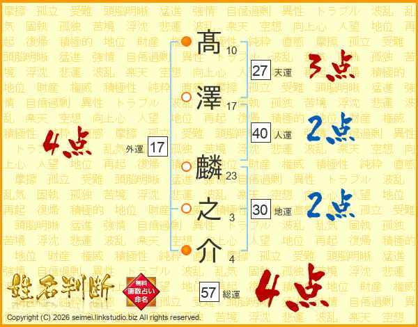 髙澤麟之介さんの総運は57画の4点!