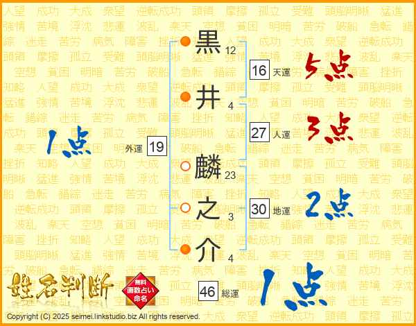 黒(12画)井(4画) 麟(23画)之(3画)介(4画)