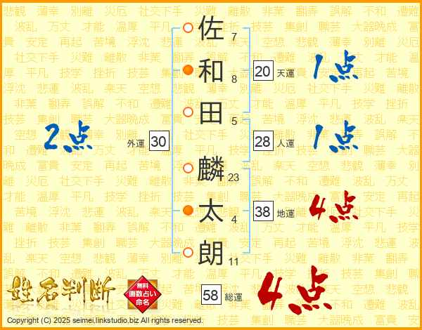 佐和田麟太朗さんの総運は58画の4点!