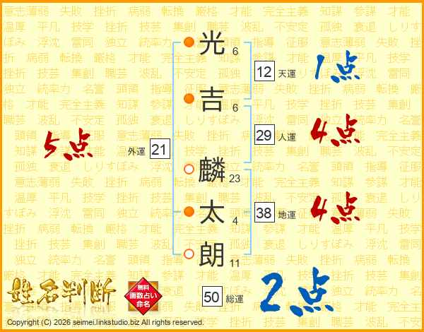 光吉麟太朗さんの総運は50画の2点!
