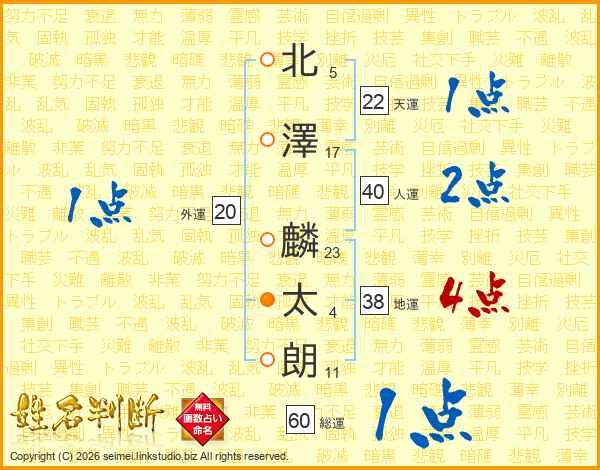 北澤麟太朗さんの人運は40画の2点!