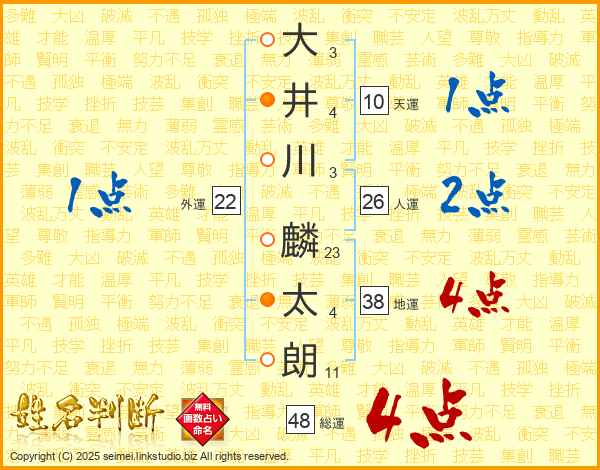大井川麟太朗さんの総運は48画の4点!