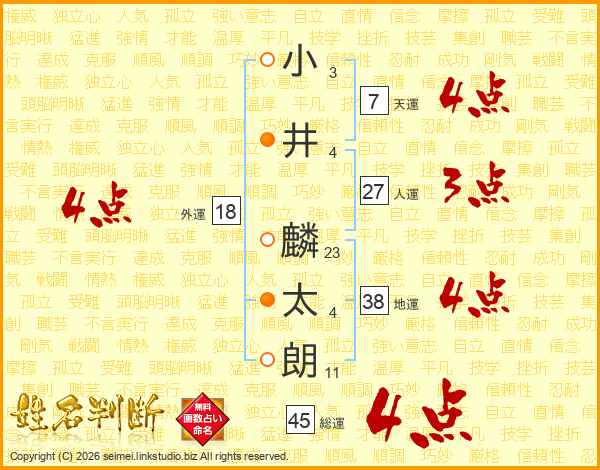 小井麟太朗さんの総運は45画の4点!