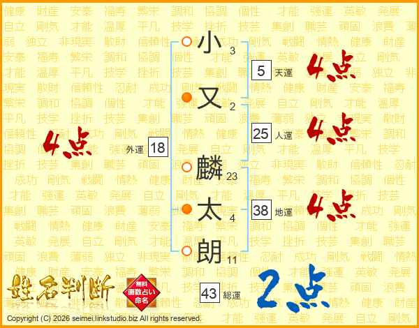 小又麟太朗さんの外運は18画の4点!