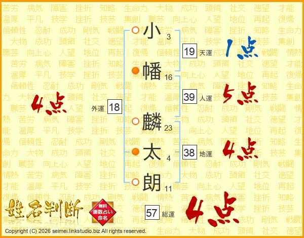 小幡麟太朗さんの総運は57画の4点!