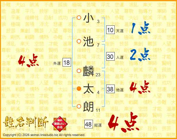 小池麟太朗さんの総運は48画の4点!
