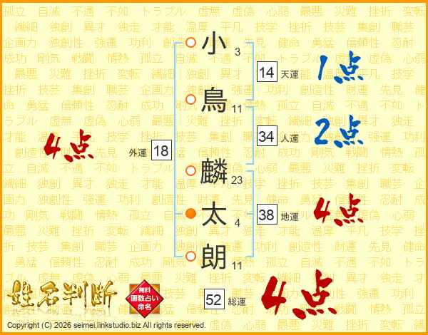 小鳥麟太朗さんの総運は52画の4点!