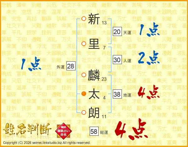 新里麟太朗さんの総運は58画の4点!