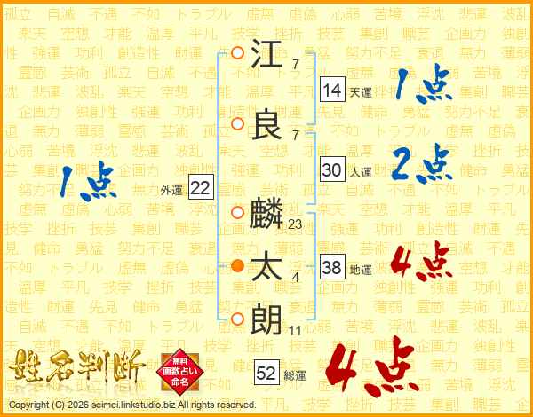 江良麟太朗さんの総運は52画の4点!
