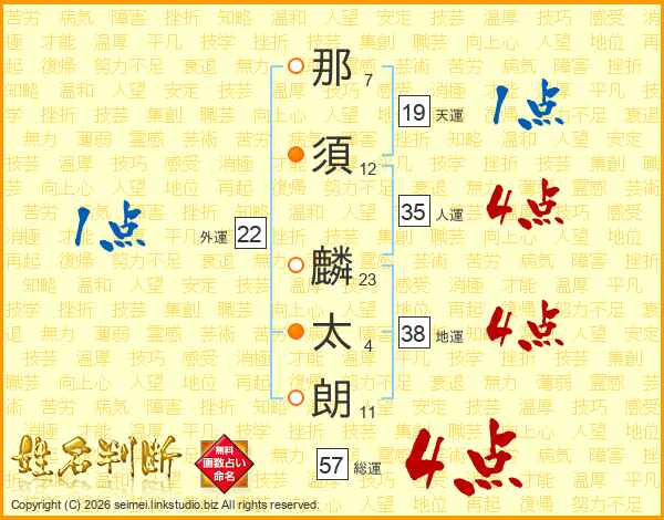 那須麟太朗さんの総運は57画の4点!