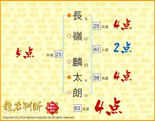 長嶺麟太朗さんの総運は63画の4点!