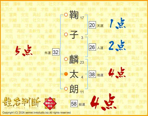 鞠子麟太朗さんの総運は58画の4点!