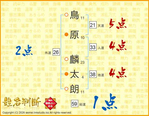 鳥原麟太朗さんの人運は33画の4点!