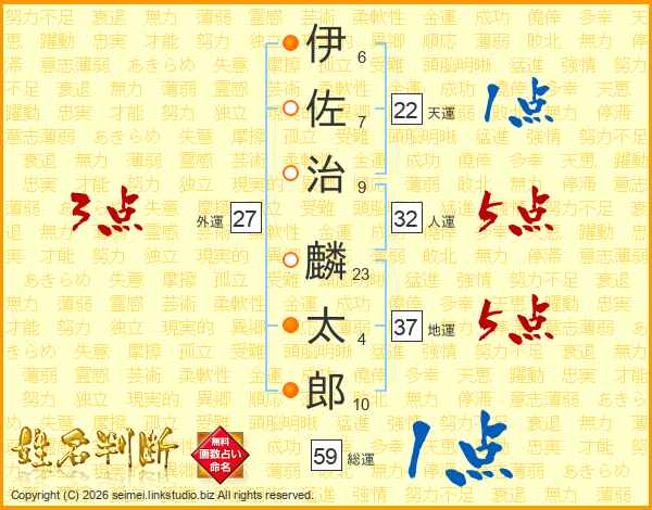 伊佐治麟太郎さんの総運は59画の1点!