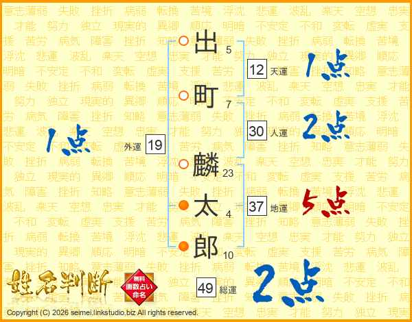 出町麟太郎さんの総運は49画の2点!
