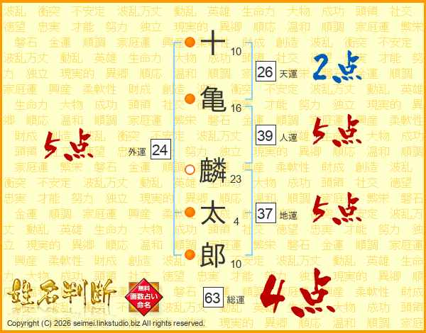 十亀麟太郎さんの総運は63画の4点!