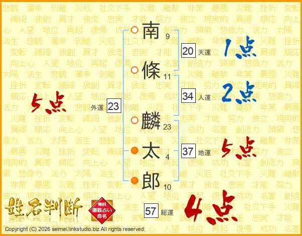 南條麟太郎さんの総運は57画の4点!