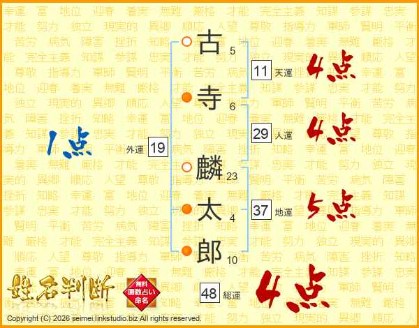 古(5画)寺(6画) 麟(23画)太(4画)郎(10画)