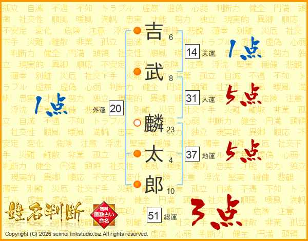 吉武麟太郎さんの人運は31画の5点!