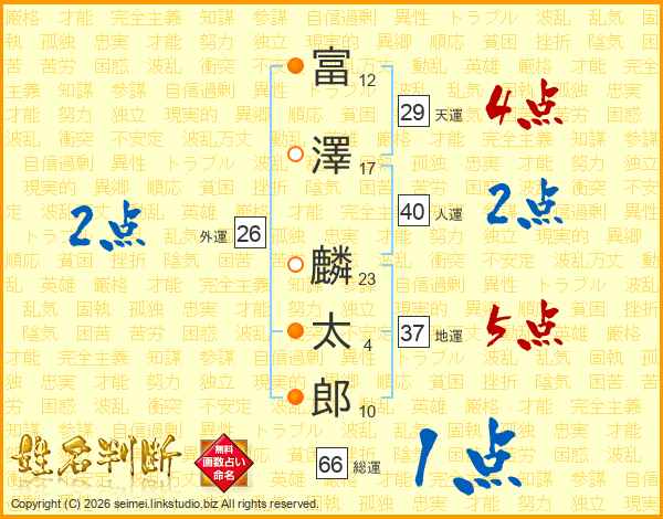 富澤麟太郎さんの総運は66画の1点!