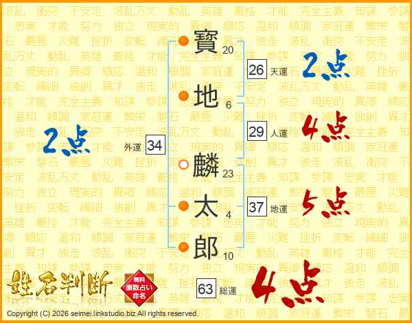 寳地麟太郎さんの総運は63画の4点!