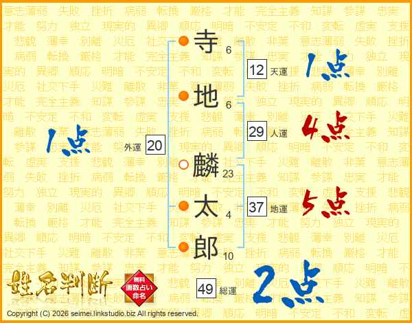 寺(6画)地(6画) 麟(23画)太(4画)郎(10画)