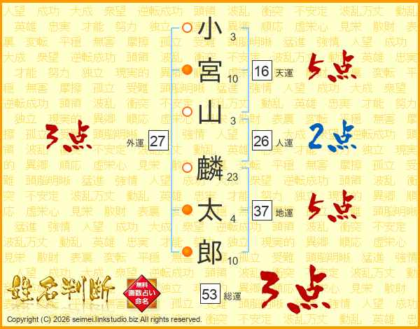 小宮山麟太郎さんの人運は26画の2点!