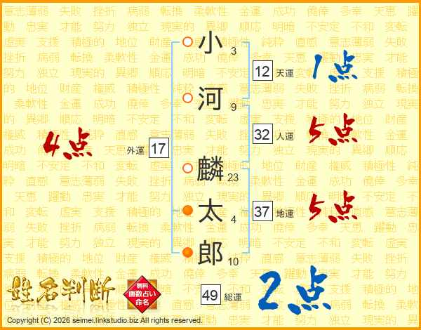 小河麟太郎さんの総運は49画の2点!