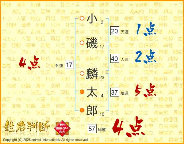 小磯麟太郎さんの総運は57画の4点!