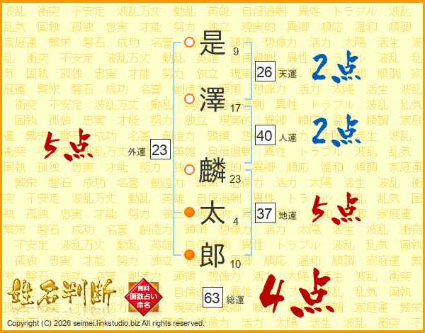 是澤麟太郎さんの総運は63画の4点!