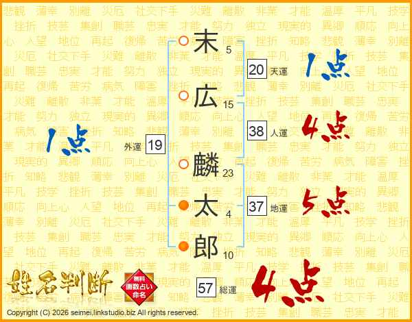 末広麟太郎さんの総運は57画の4点!