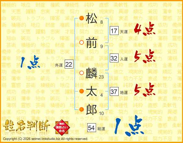 松前麟太郎さんの総運は54画の1点!