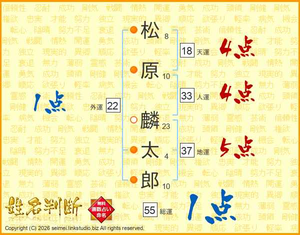 松(8画)原(10画) 麟(23画)太(4画)郎(10画)