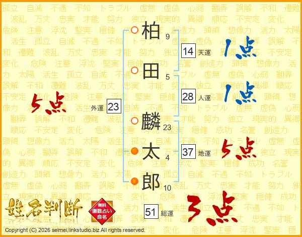 柏(9画)田(5画) 麟(23画)太(4画)郎(10画)