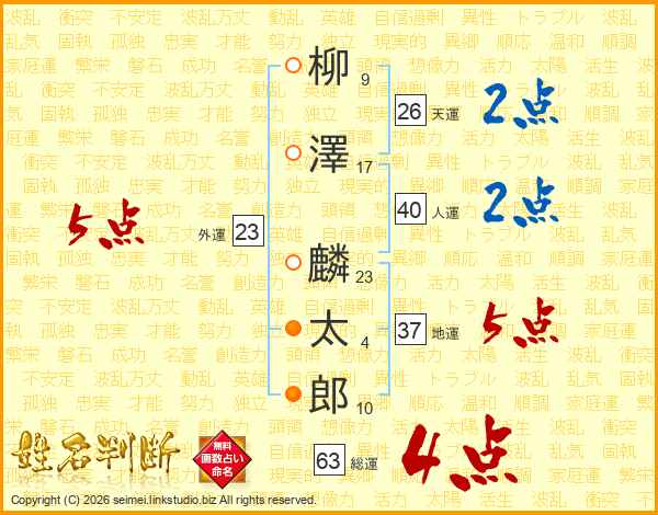柳澤麟太郎さんの総運は63画の4点!