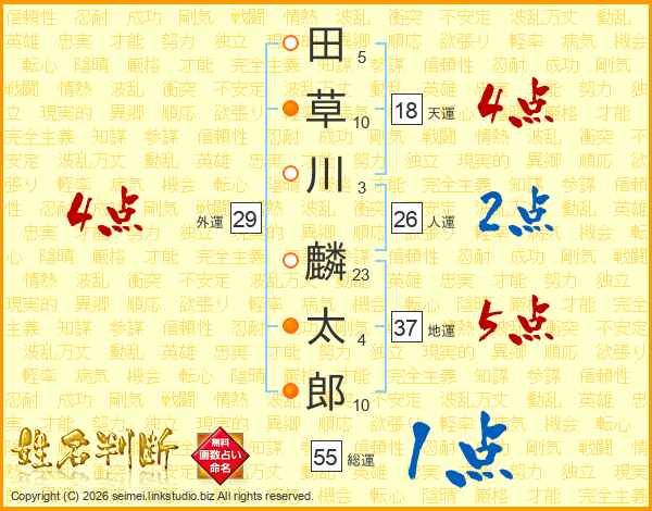 田草川麟太郎さんの天運は18画の4点!