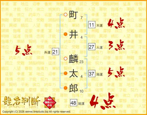 町(7画)井(4画) 麟(23画)太(4画)郎(10画)