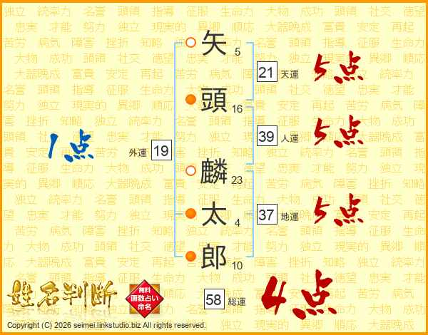 矢頭麟太郎さんの人運は39画の5点!
