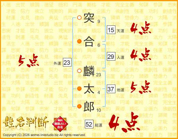 突(9画)合(6画) 麟(23画)太(4画)郎(10画)