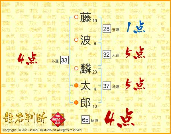 藤波麟太郎さんの総運は65画の4点!