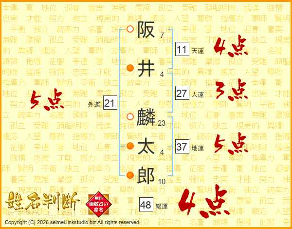 阪井麟太郎さんの総運は48画の4点!