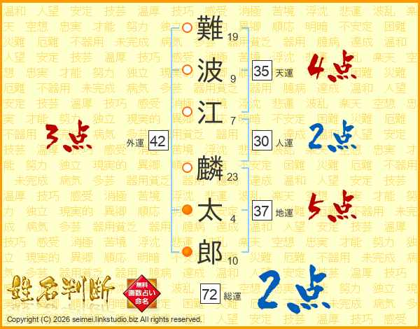 難波江麟太郎さんの天運は35画の4点!